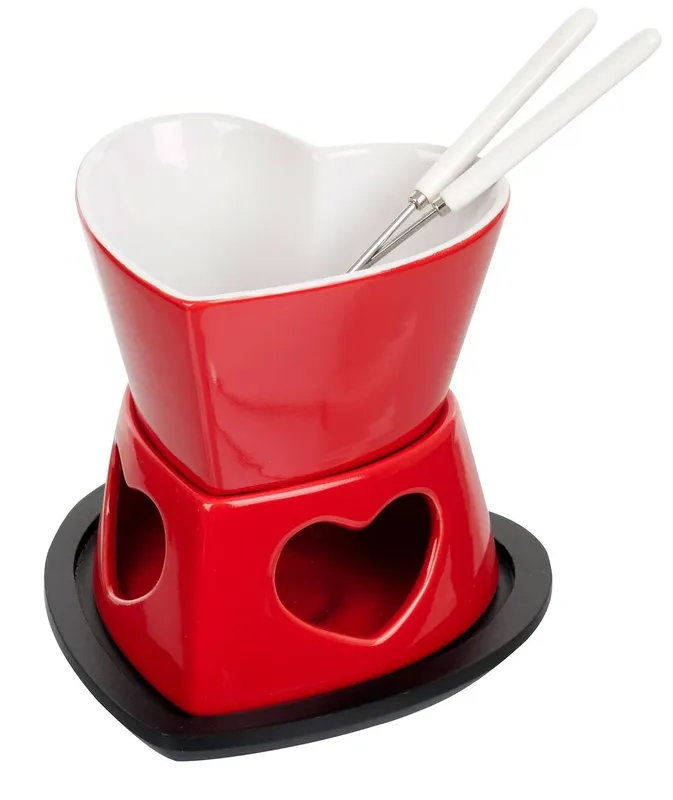 Het is nog wat vroeg voor Valentijn, maar ook met Kerst is kaasfondue een populair eten. Voor geliefden of anderen met een warm hart (letterlijk) is er deze fondueset, geschikt voor kaas- en chocoladefondue.