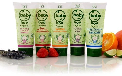 De Baby Boo Organic lijn bestaat uit een vijftal producten voor de dagelijkse verzorging en drie verwenproducten, zoals een massageolie waarmee ouders hun baby eens flink in de watten kunnen leggen. Ingrediënten zoals Shea Butter, Kamille, Borage en Rozenbottel verzorgen en vertroetelen de delicate babyhuid en bevorderen bovendien rust en ontspanning. Alle producten zijn aantrekkelijk verpakt in recyclebare verpakkingen. De tubes hebben een handige flip-cap sluiting. Moeders kunnen deze dop met één hand openen en sluiten, waardoor bij het badje of verzorging op de commode altijd een hand vrij blijft voor de baby.